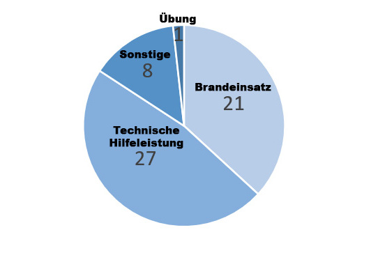 Im Jahr 2024 wurden wir zu insgesamt 57 Einätzen alarmiert, die sich wie folgt aufteilen.