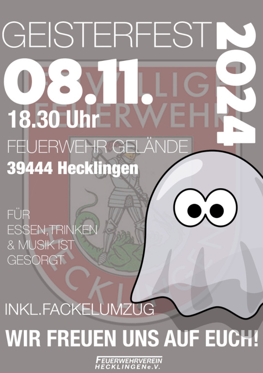 Dann komm zum Geisterfest 2024 auf dem Hof der Feuerwehr Hecklingen und erlebe einen Abend voller Schauer und guter Laune!